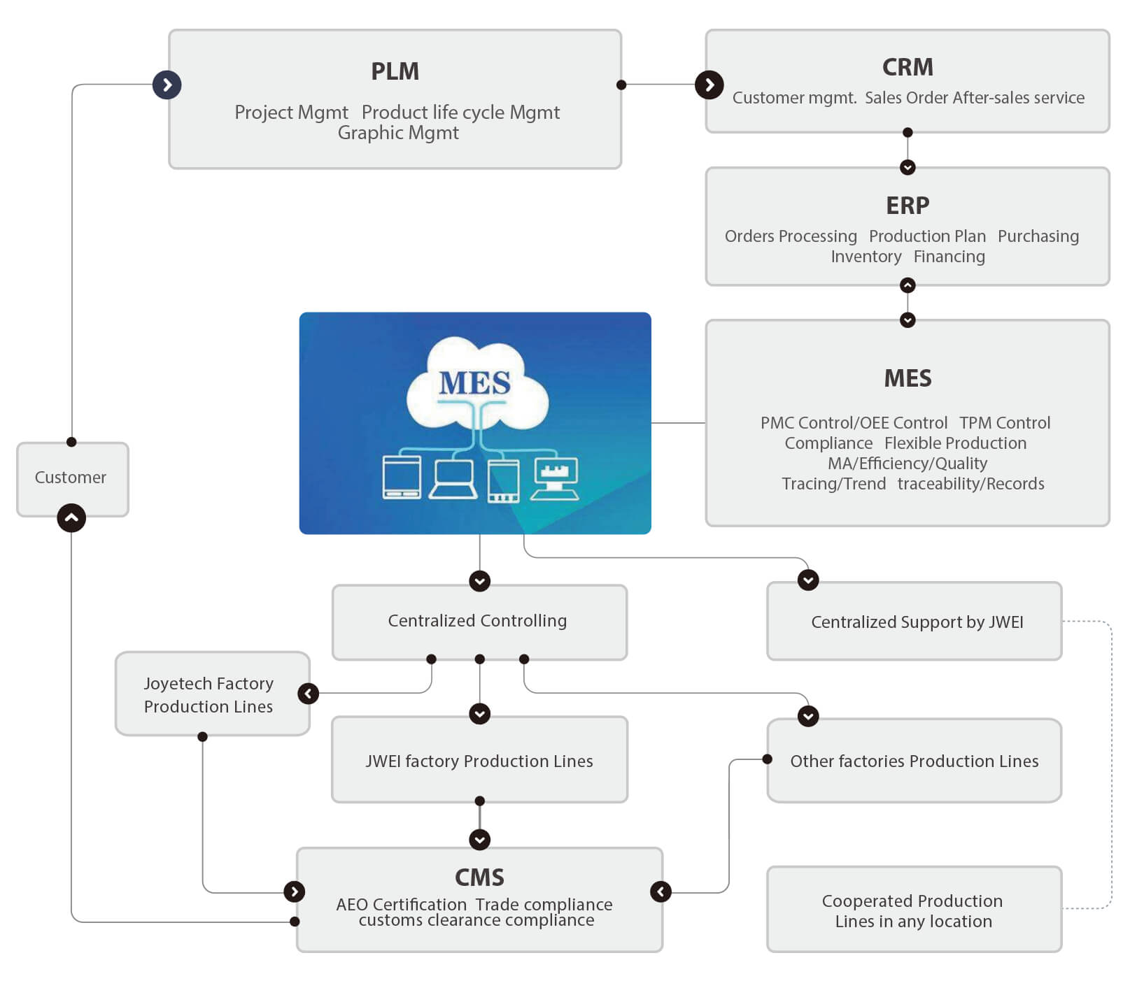 Powered by MES system, ERP system, and PLM/CRM/ Customs system, our team of sales, R&D, manufacturing, and the supply chain, logistics and customs clearance are efficiently collaborated. We offer one-stop service including customer customization, rapid response efficient collaboration, and rapid delivery of high-quality products. The products are fully traceable, and the production process is transparent, digital and flexible.